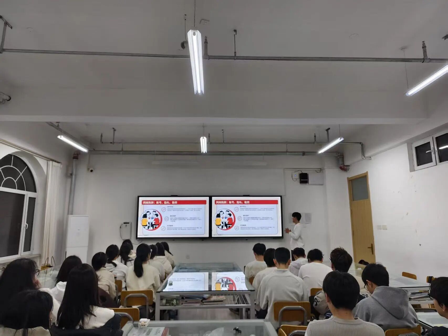 本次党团主题教育课聚焦团员青年日常安全需求,分模块开展精准宣讲。安全教育活动中,以“筑牢安全防线,守护青春平安”为核心,播放安全警示短片、剖析校园安全典型案例;诚信教育专题课聚焦品德修养培育,通过正面典型宣讲、负面案例警示,深刻阐释诚信对个人成长、集体建设的重要意义;以“以赛代练,以赛促学”为抓手,紧扣思想引领与知识积累目标,通过竞赛化培育模式,有效激发团员主动学习、积极实践的内生动力;读书工程专题课明确读书工程实施框架,精选涵盖党的创新理论、经典文学著作、专业知识拓展等领域的推荐书目;“五个能力”提升专题课立足青年全面发展需求,着力锤炼综合素质,助力成长为堪当时代重任的高素质青年。